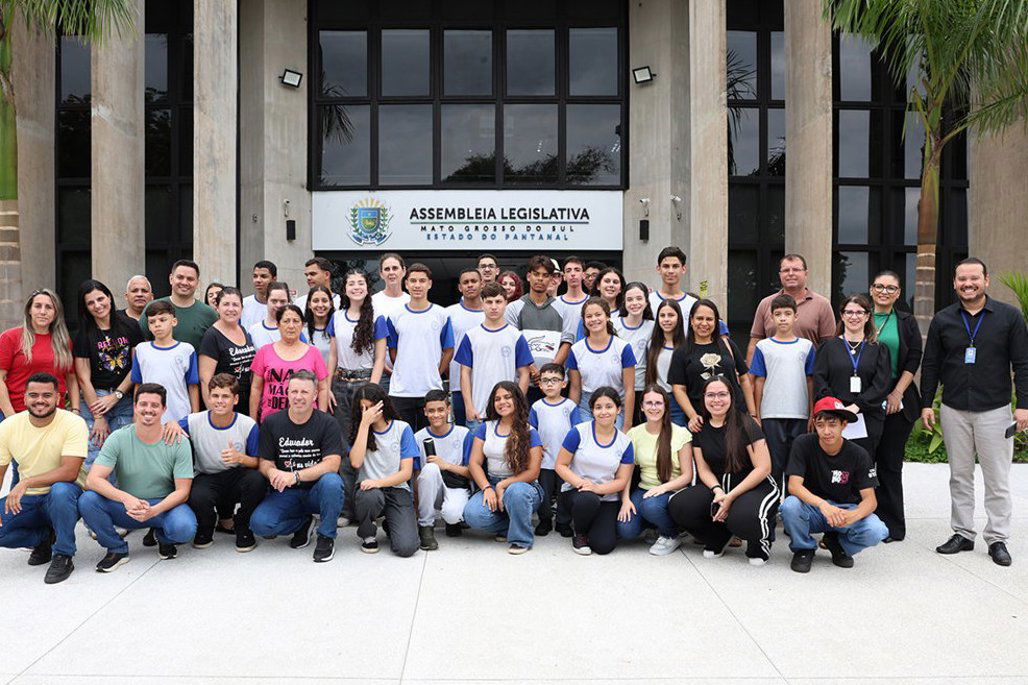Nesta terça-feira (14), a Assembleia Legislativa de Mato Grosso do Sul (ALEMS) recebeu uma visita especial de alunos do Ensino Médio da Escola Estadual Carlos Bernardes Staut, localizada em Ribeirão dos Índios, São Paulo. A iniciativa, que faz parte do Projeto Interdisciplinar “Experimentando o conhecimento - Staut em Campo”, levou um grupo de 35 estudantes, além de professores e pais, para explorar as diversas áreas do Poder Legislativo Estadual e aprofundar seu conhecimento sobre as funções de um deputado estadual.