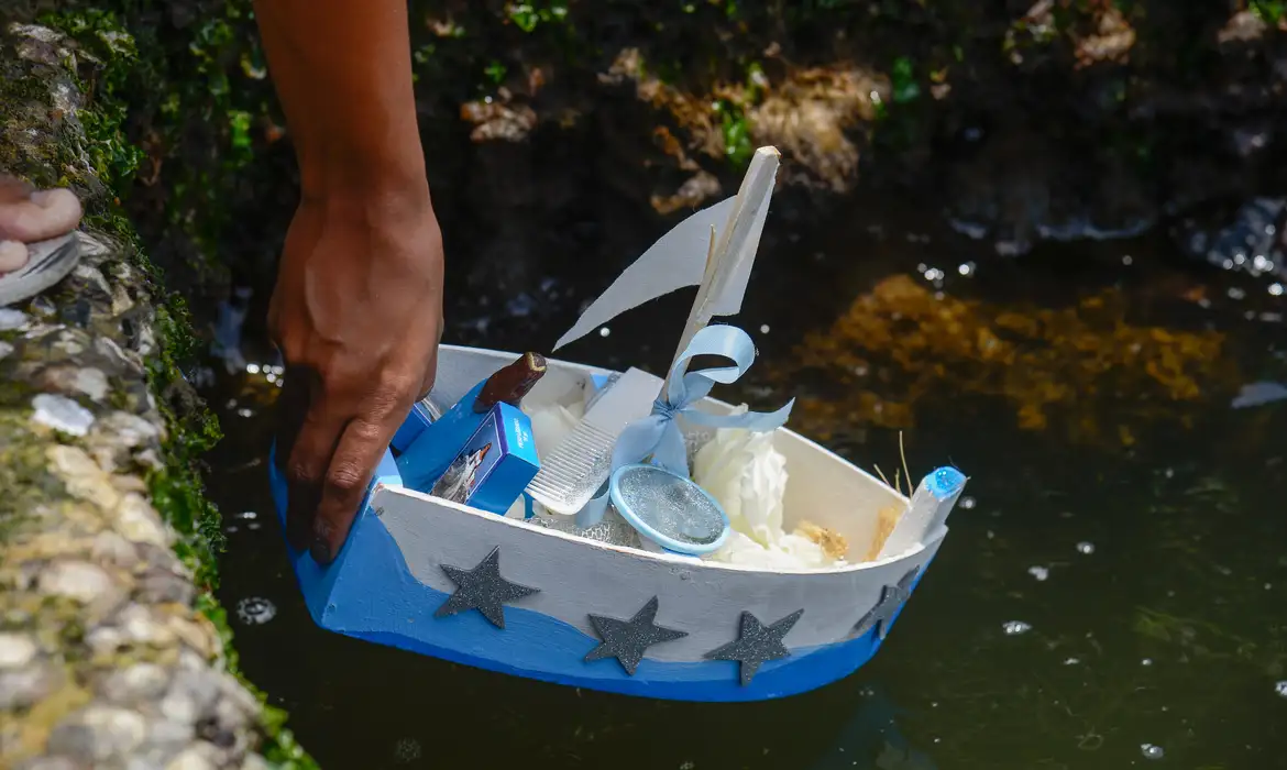 Em seguida, formou-se um cortejo em direção à Praça Mauá, na região portuária. Lá, embarcação partiu para o mar, carregando presentes e oferendas para Iemanjá, como perfumes, champanhe e flores brancas. O ritual expressou devoção e respeito à divindade aquática.