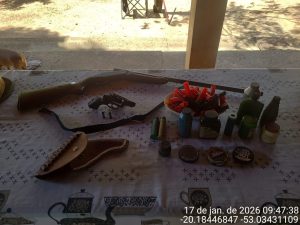 Durante a ação, as equipes policiais monitoraram o local das atividades ilícitas e, por volta das 6h, detectaram intensa movimentação de pessoas. Após a abordagem de um veículo, foram encontrados diversos equipamentos para pesca e caça ilegais, além de peixes capturados, entre eles espécies proibidas como o dourado. Os veículos utilizados pelos criminosos também foram apreendidos.