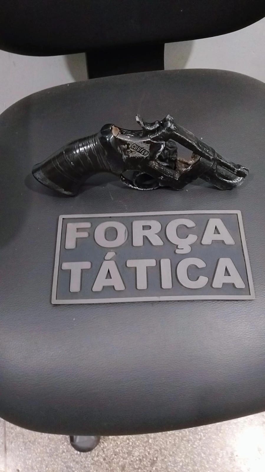Ao chegarem ao local indicado, os policiais da Força Tática localizaram e abordaram o suspeito. Durante a revista, foi encontrado um revólver calibre .22, da marca Custer, sem munições, na cintura do indivíduo. A arma estava com numeração raspada e apresentava condições precárias. O suspeito tinha antecedentes criminais, incluindo furtos, roubos e tráfico de drogas.