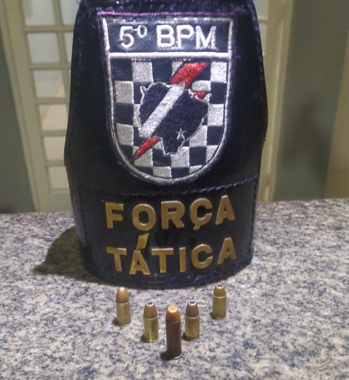 Em resposta, foi iniciado um acompanhamento tático, seguido de abordagem ao veículo. A busca realizada revelou quatro munições de calibre 9mm, da marca CBC, guardadas em uma sacola no banco traseiro. O motorista admitiu ser o dono das munições e informou que havia mais uma munição em sua residência.