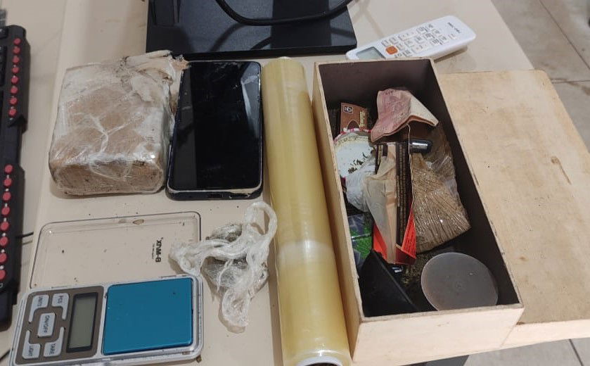 No local, os policiais detiveram o suspeito. Durante a busca no imóvel, encontraram pequenas porções de maconha na pia da cozinha, uma balança de precisão dentro do forno do fogão, e um tablete de maconha, pesando 334,5 gramas, dentro da geladeira.