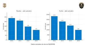 Além do combate à comunicação falsa, a Polícia Civil e outros órgãos de segurança pública têm diminuído sistematicamente os crimes patrimoniais relacionados a veículos. Entre 2023 e 2025, registrou-se uma redução de mais de 50% nos furtos, com casos caindo de 2.333 em outubro de 2022 para 986 em outubro de 2025. Os roubos de veículos também caíram significativamente, de 238 para 109 ocorrências no mesmo período.