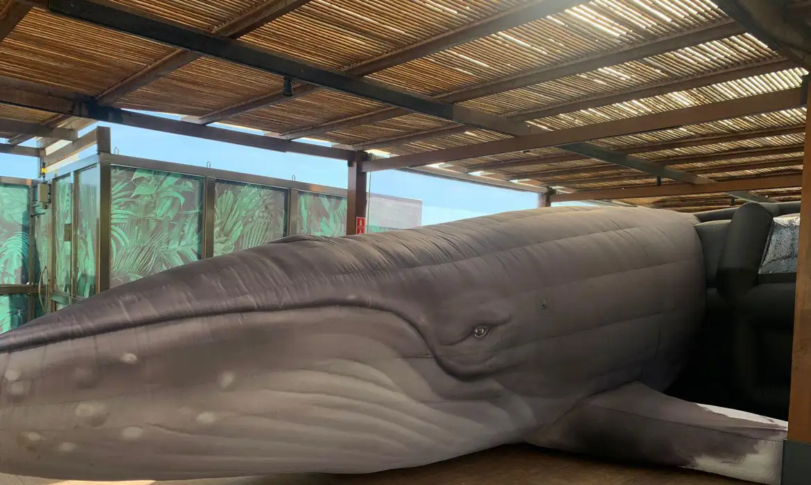 Durante a Semana Nacional de Ciência e Tecnologia, realizada no Jardim Botânico do Rio de Janeiro, uma réplica inflável de uma baleia jubarte adulta, medindo 14 metros, foi instalada na entrada do arboreto, atraindo especialmente crianças. O evento começou na segunda-feira (20) e se estende até domingo (26). A programação é gratuita e educativa.